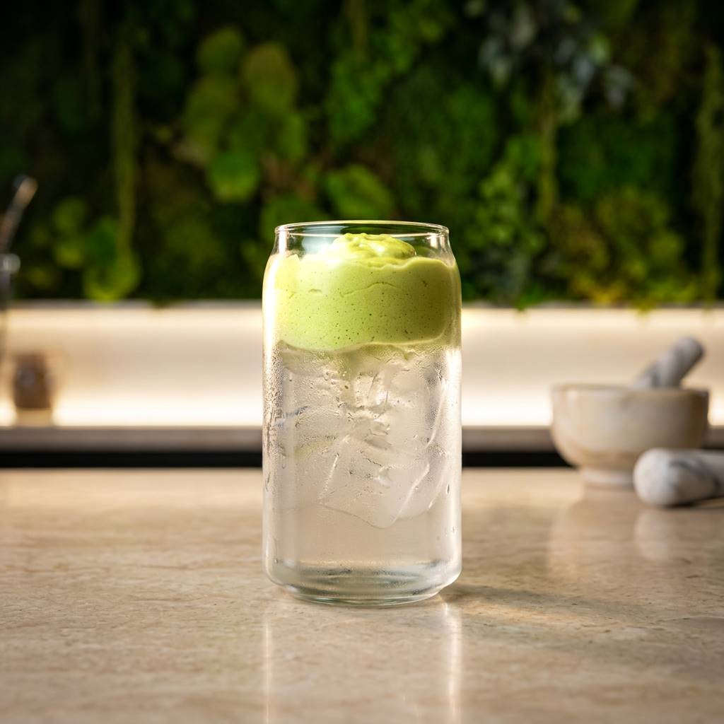 Es agua de coco súper refrescante con un foam de matcha suave y cremoso arriba.